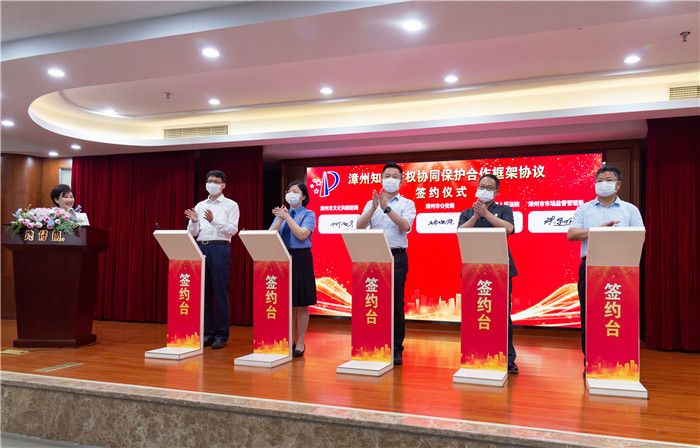 在揭牌仪式上,5家单位联合签署了《漳州市知识产权协同保护合作框架协议》。《框架协议》从知识产权创造、运用、保护、管理、服务等方面着手,明确了成立知识产权协同保护中心、完善诉调对接、加强巡回审判示范、强化线索移送、加大联合执法力度、加大联合惩戒力度、强化知识产权刑事检察、建立知识产权重点关注名录等13项措施,着力凝聚合力,打造“健全统一领导、衔接顺畅、快速高效的协同保护格局”,为优化营商环境、助力漳州加快建设现代化滨海城市提供有力保障。