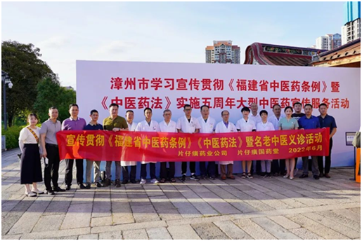为宣传贯彻《福建省中医药条例》,在《中医药法》实施五周年之际,漳州市卫健委全力推动中医药健康文化传播,深入推进中医药法律法规宣传贯彻落实,普及中医药文化知识,提高广大群众中医养生保健素养。由漳州市卫健委主办,龙文区卫健局及漳州市中医院协办,漳州市片仔癀国药堂医药连锁有限公司承办的“漳州市学习宣传贯彻《福建省中医药条例》暨《中医药法》实施五周年大型中医药宣传服务活动”于6月28日在片仔癀名医馆(闽南水乡分馆)举行。