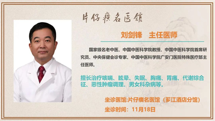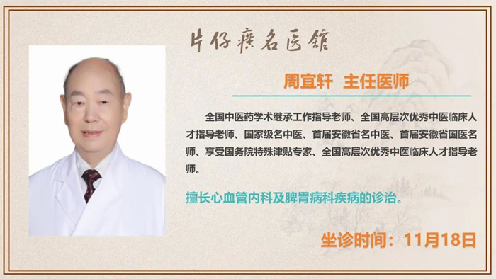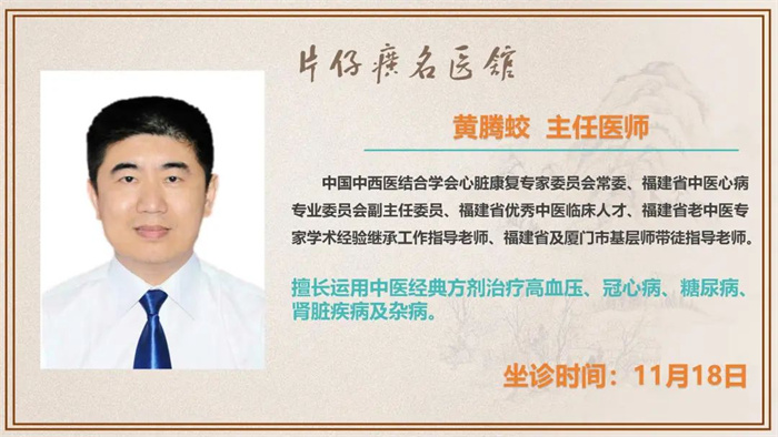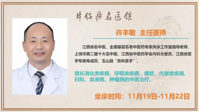 片仔癀名医馆丨11月18日—11月24日,全国31位名中医陆续到馆
