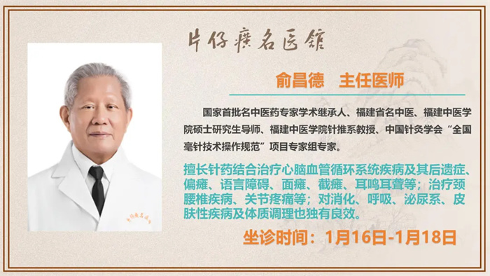 片仔癀名医馆丨1月13日—1月19日,全国44位名中医陆续到馆