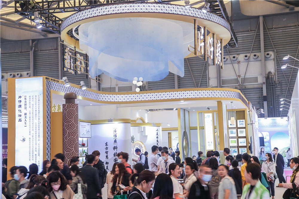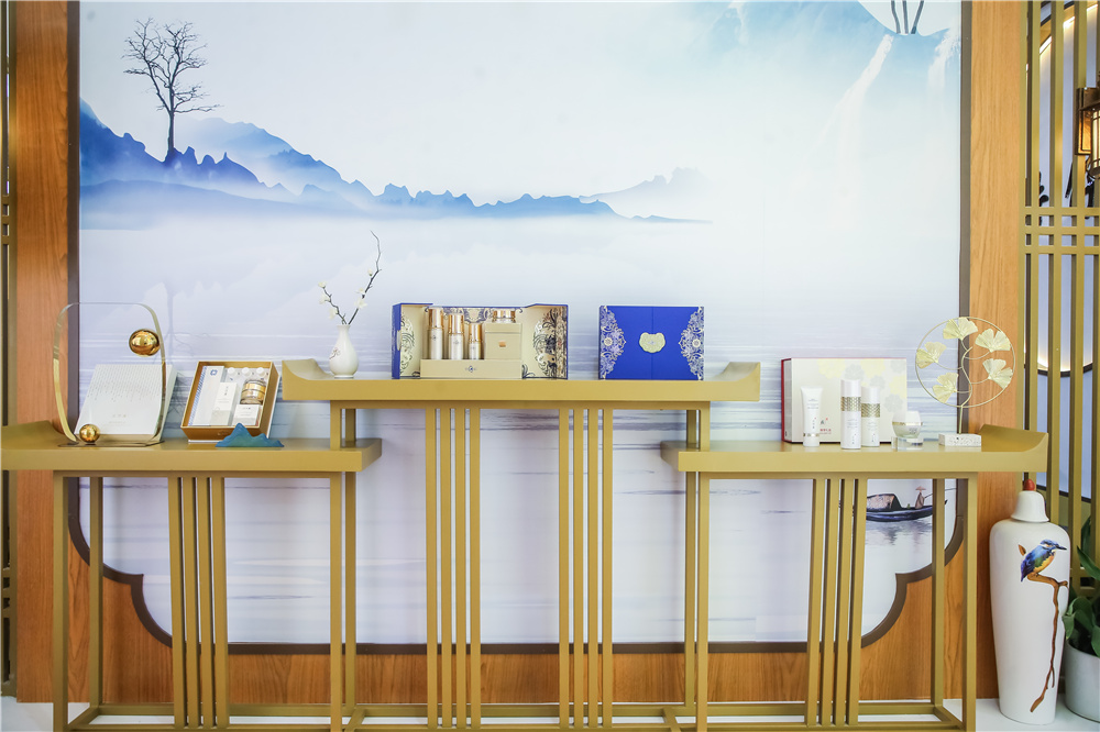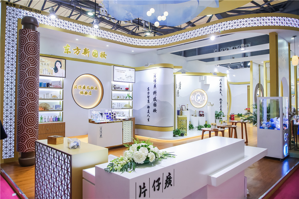 本次美博会,片仔癀化妆品展馆以“东方”为灵感,采用古今结合的新中式风格设计,汲取片仔癀化妆品体验店设计元素,打造独具东方艺术风范的国风馆,充分展现出片仔癀化妆品大国美妆品牌风范,在美博会琳琅满目的展馆中脱颖而出,显得格外醒目。