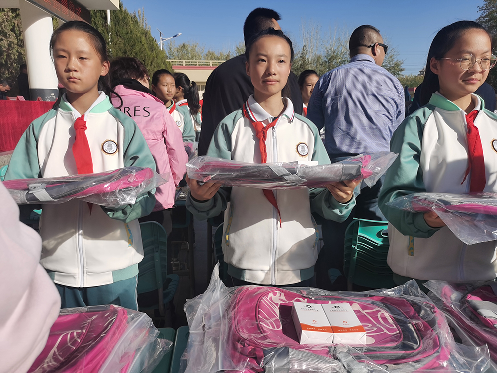 公司还专门为敦煌市第五小学的学生举办了专场捐赠,香化协会副秘书长冯锐与公司工会副主席王立珊等受公司委托为受助学生捐赠了爱心书包和皇后牌保湿滋润蜜,用片仔癀人的爱心传递希望。同时勉励孩子们珍惜学习的机会,刻苦学习,发奋图强,常怀感恩之心,把苦难作为一种历练,不断提升自己的本领,用知识改变命运,用奋斗成就未来,用奉献回报社会。