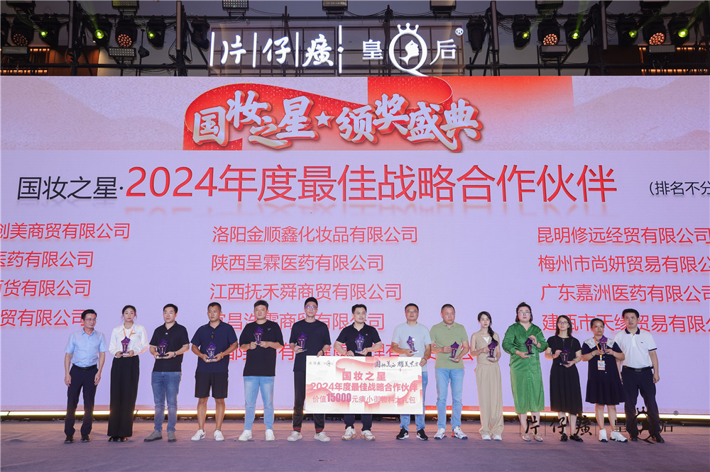 正因为在终端有许许多多的优秀合作伙伴,在实践中创新突破,是有着赤诚之心的传承者,也是默默辛劳的耕作者,如同国妆之星熠熠生辉。在会上彼此促膝而谈,分享宝贵经验,共探国妆美白,只为聚势共创未来,因此,在此次国妆之星颁奖闪耀晚会上,片仔癀化妆品为2024年国妆发展做出努力贡献的经销商、加盟商进行了表彰颁奖,以鼓励渠道商和片仔癀化妆品共建共享,推动国妆事业进一步发展。