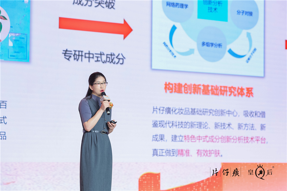 片仔癀(上海)生物科技研发有限公司副总经理赵晓女士在会上介绍了片仔癀化妆品2024中式成分健康美白白皮书的科研精髓,以及在铁皮石斛、蚕丝、水仙、人参、金线莲等中式成分的研发新成果。她强调,中式科研是片仔癀化妆品品牌的核心竞争力之一,坚定不移地深化对地标式特色中式成分的功效探索与科学验证,致力于将研究成果转化为实际应用,不断拓宽中式成分护肤的边界。