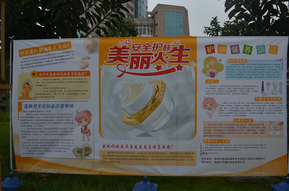 据悉,本次活动的主办单位是漳州食品药品监督管理局,漳州市食品药品审评与不良反应监测中心。协办单位有共青团漳州职业技术学院委员会,漳州市医院,漳州市皮肤病防治院,福建片仔癀化妆品有限公司。国内美白领军品牌片仔癀化妆品也为现场的群众做了皮肤问题的答疑,并附送了前来询问的群众护肤中样。虽然今天上午天气闷热,但是并不影响群众们的热情。