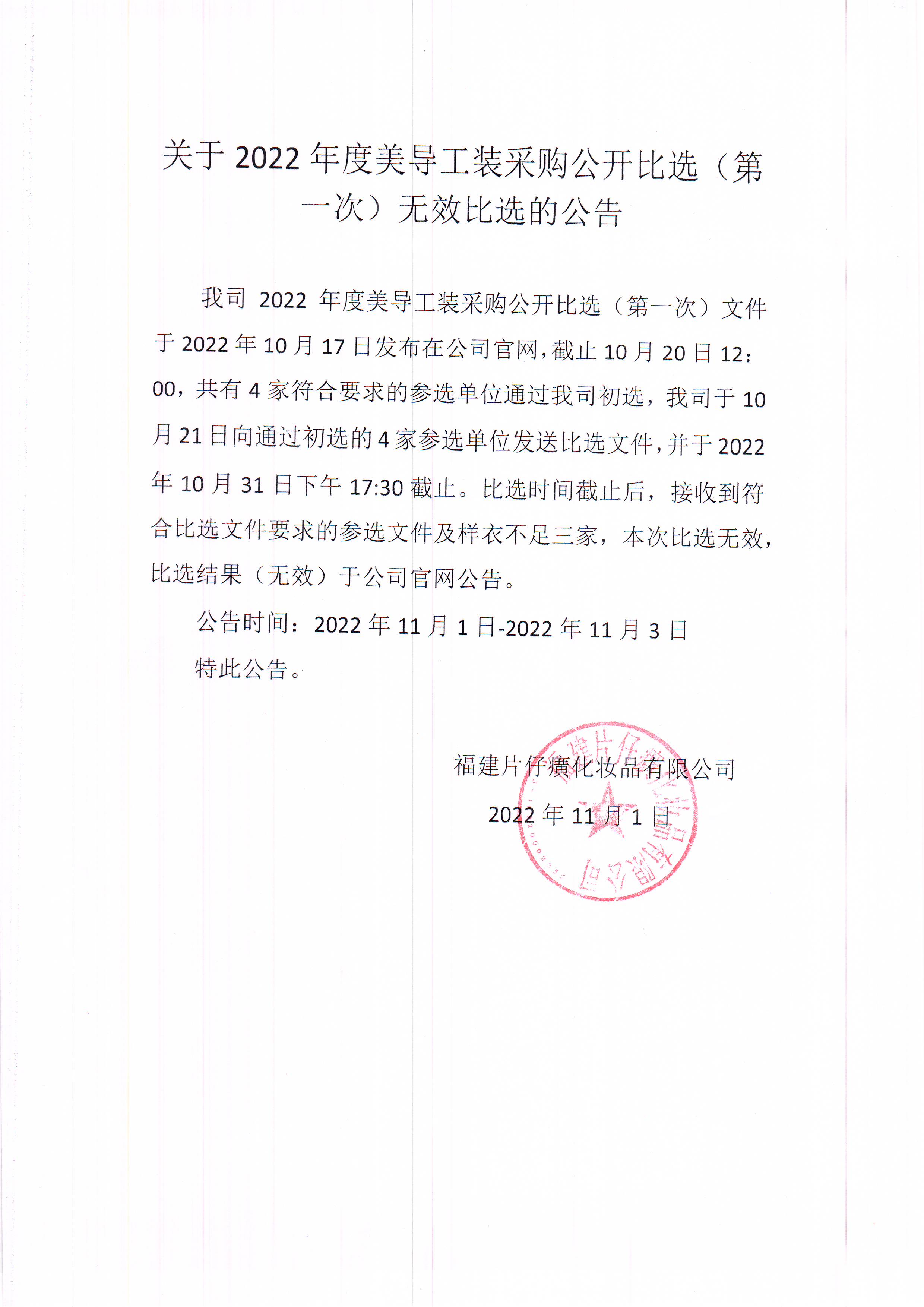 关于2022年度美导工装采购公开比选(第一次)无效比选的公告