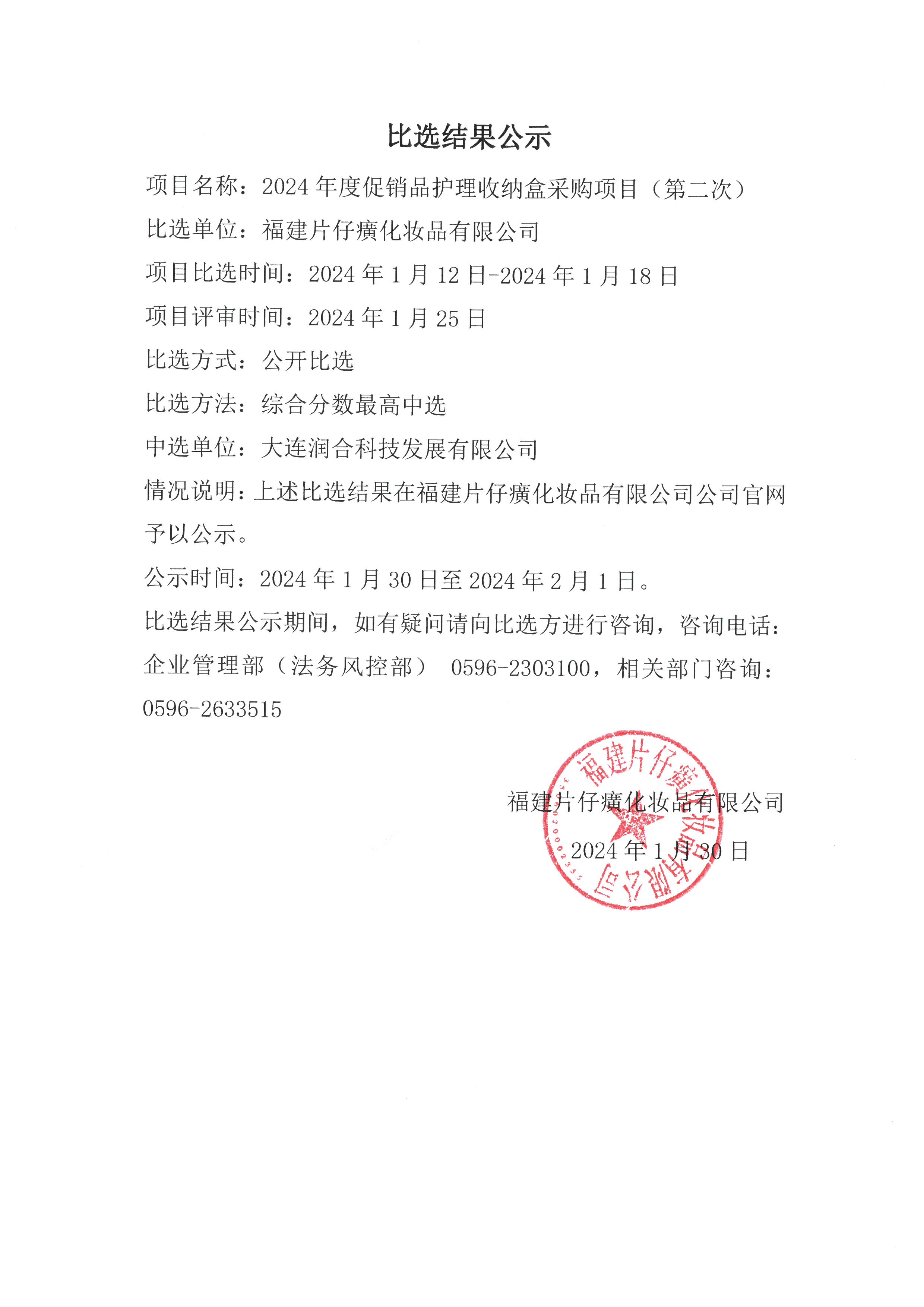 2024年度促销品护理收纳盒采购项目(第二次)比选结果公示
