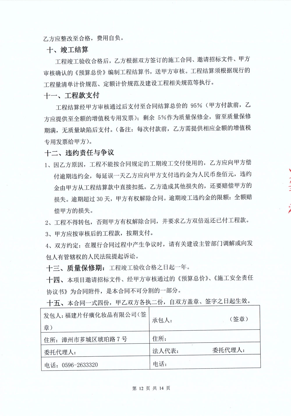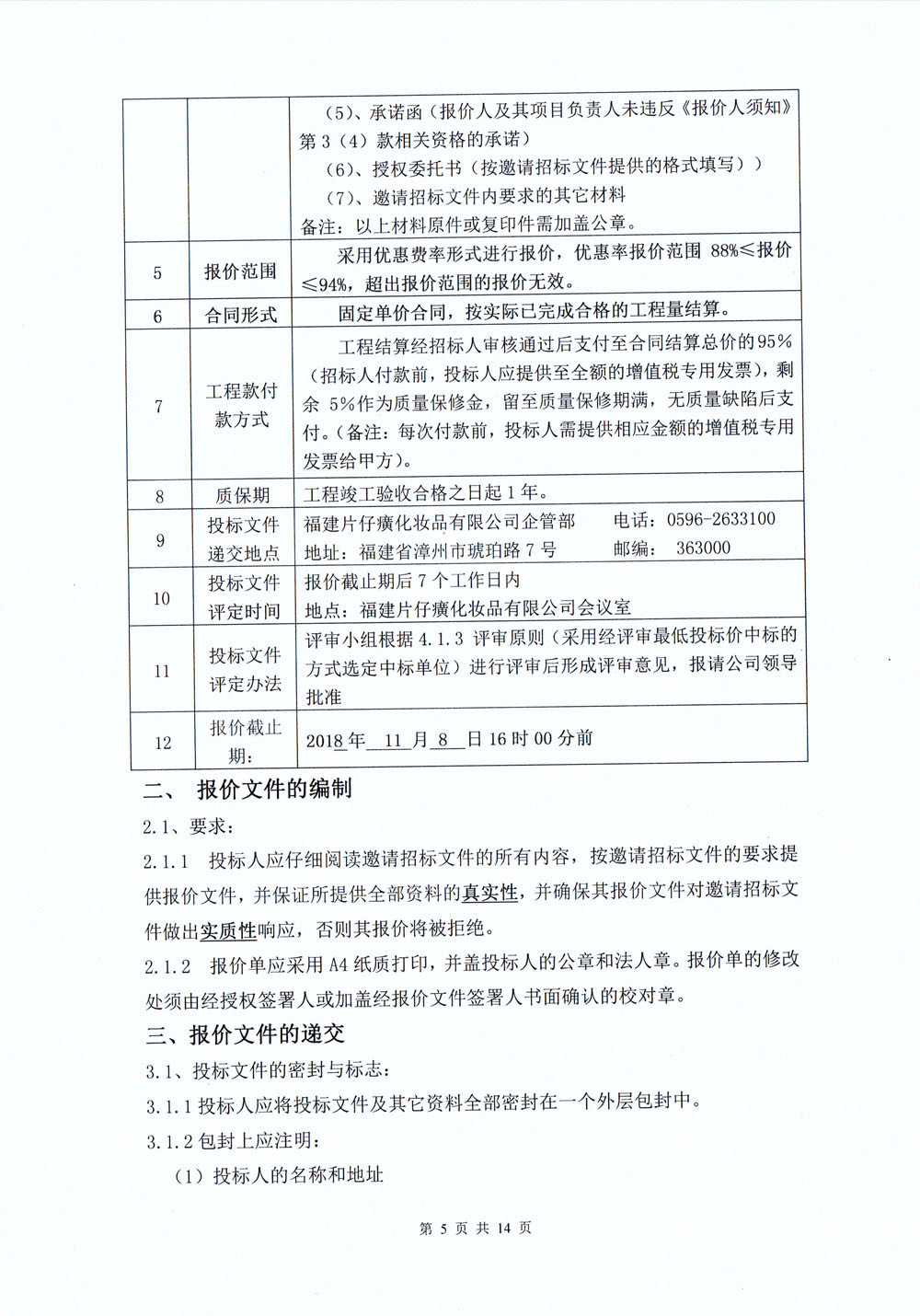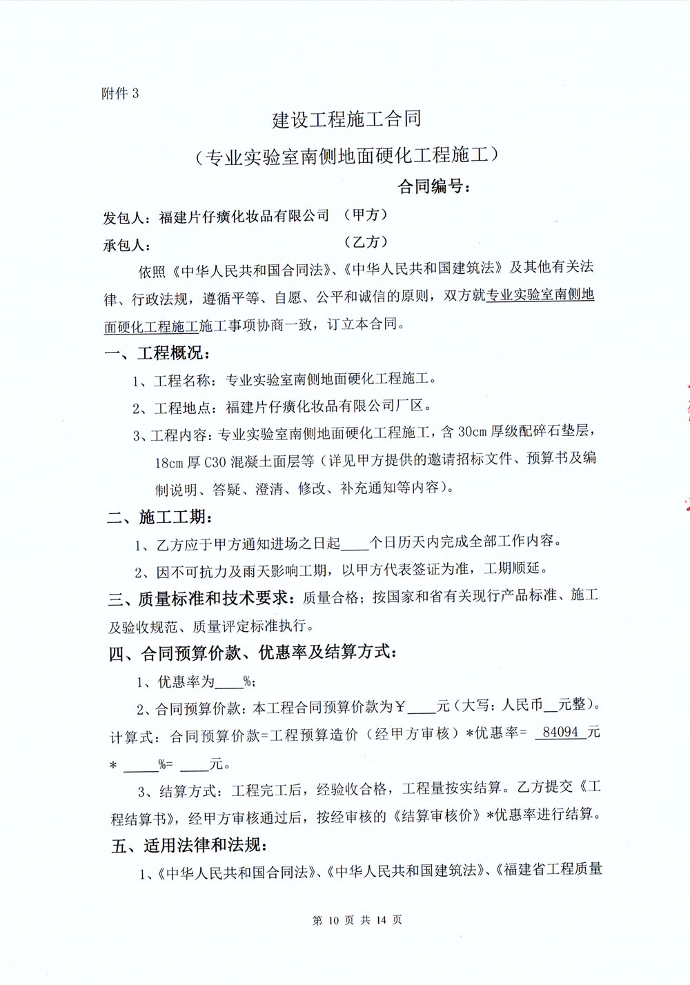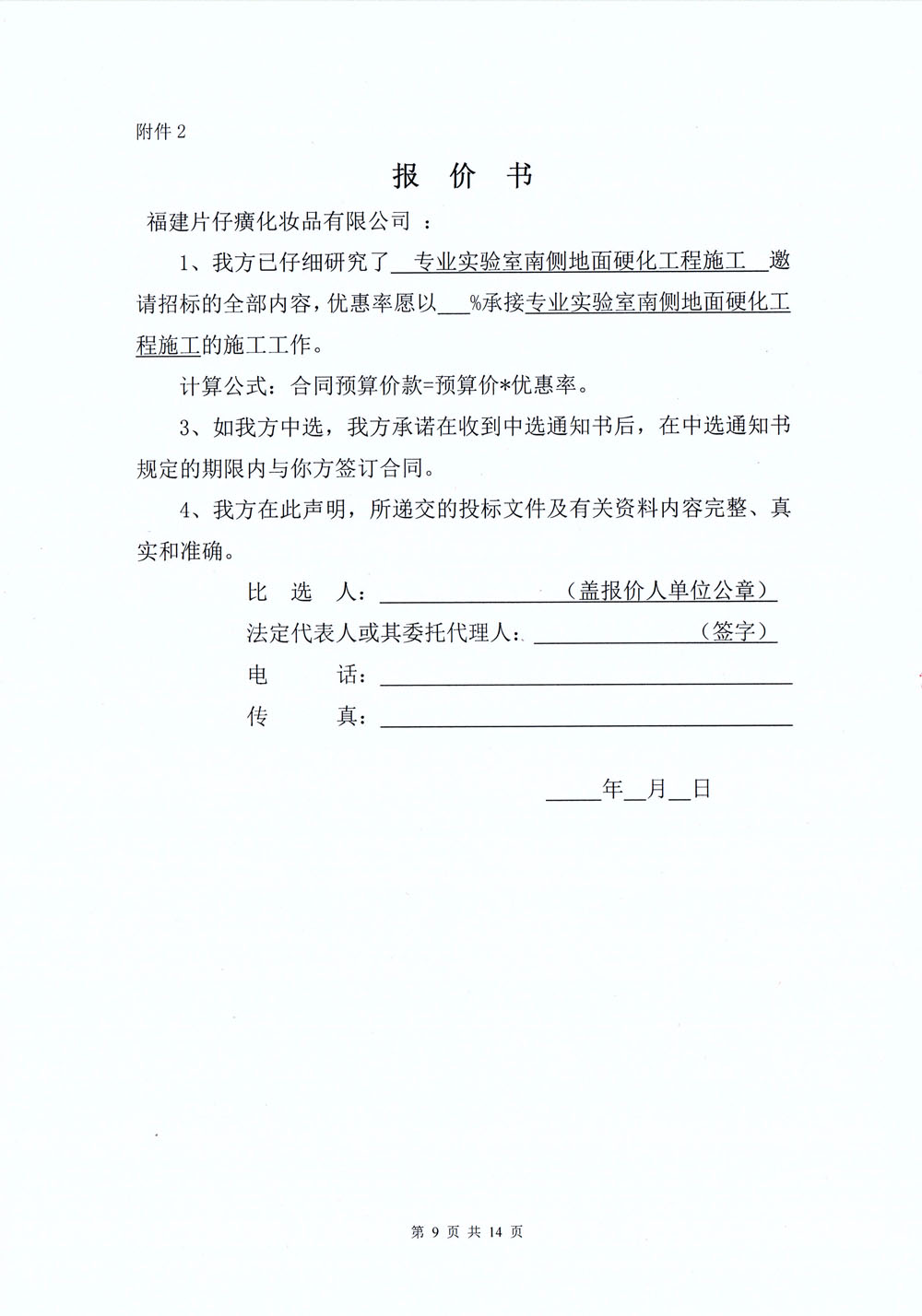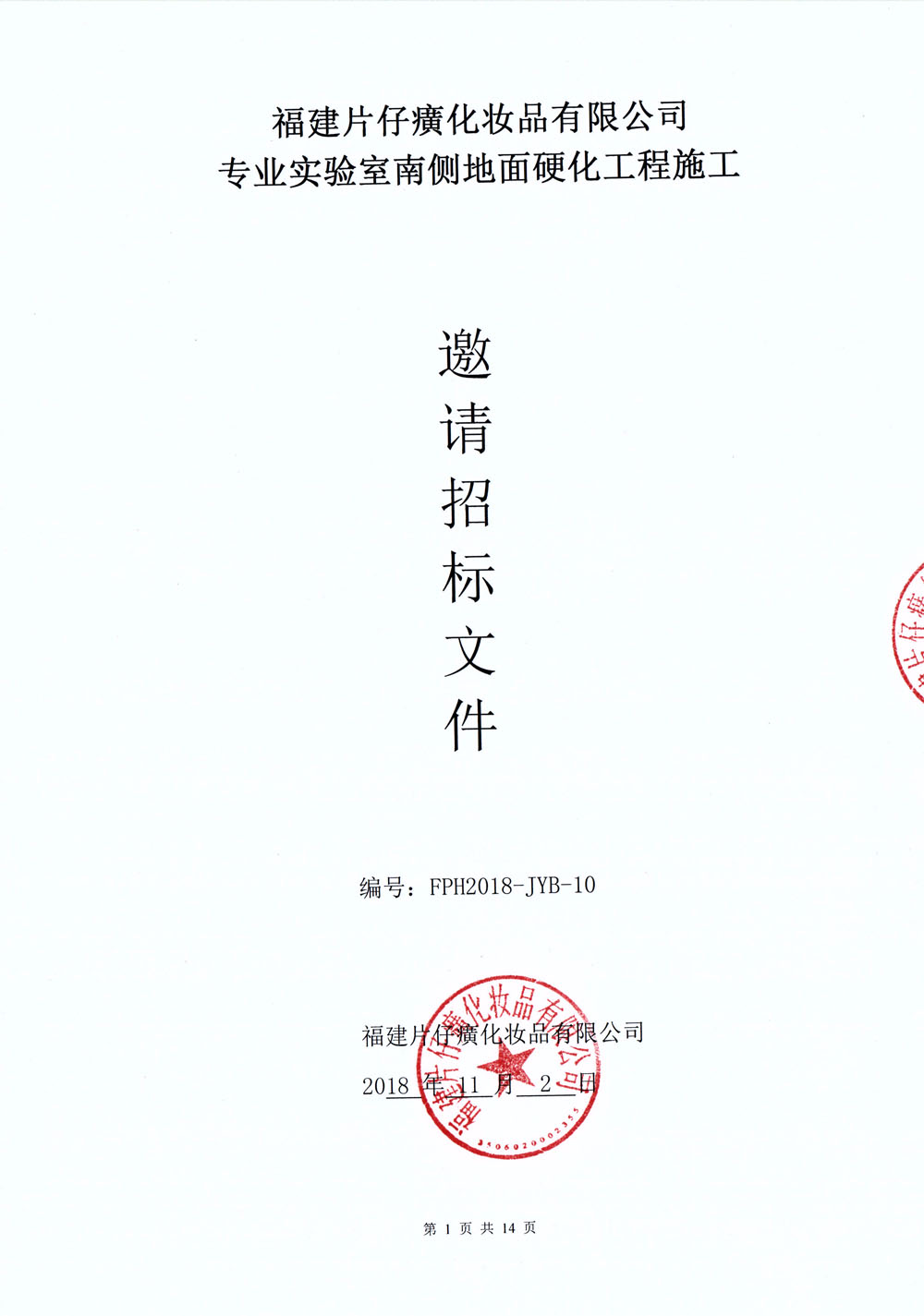 福建片仔癀化妆品有限公司专业实验室南侧地面硬化工程施工邀请招标文件
