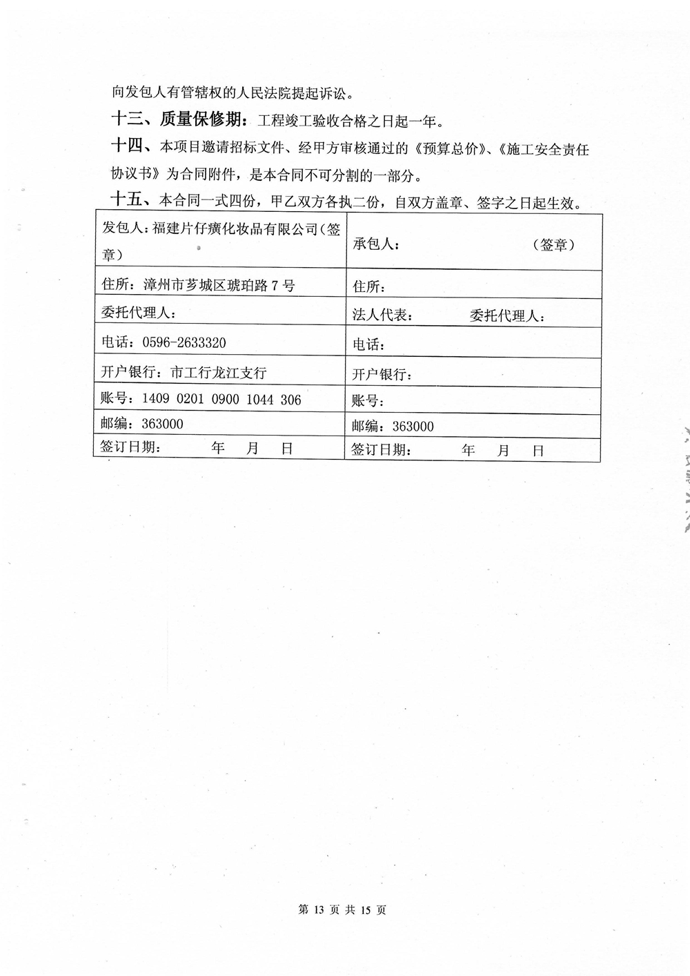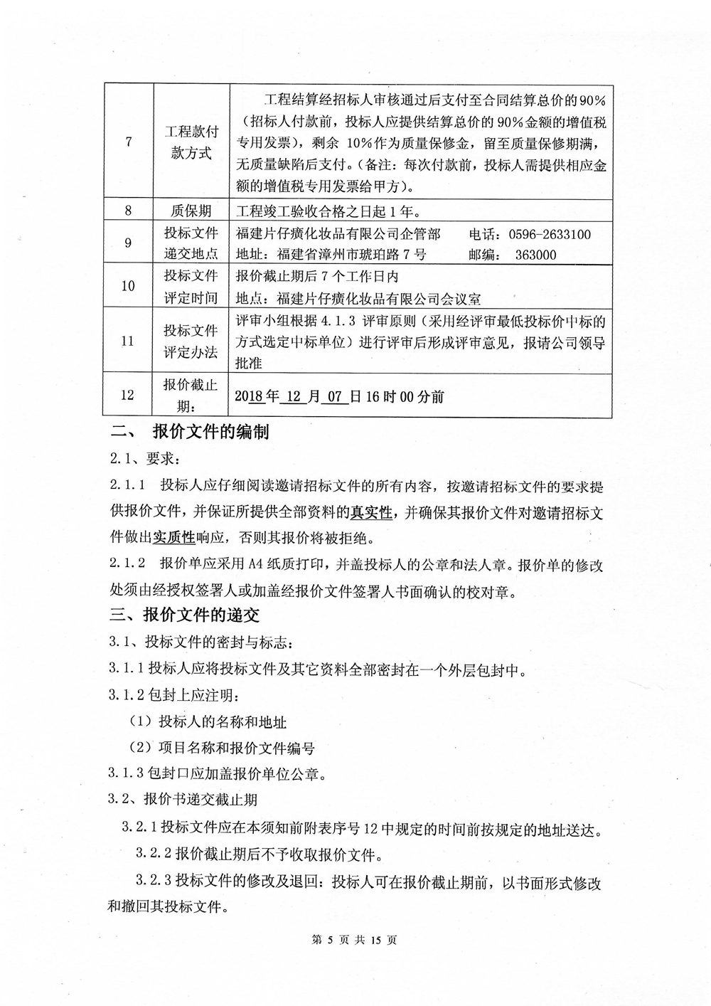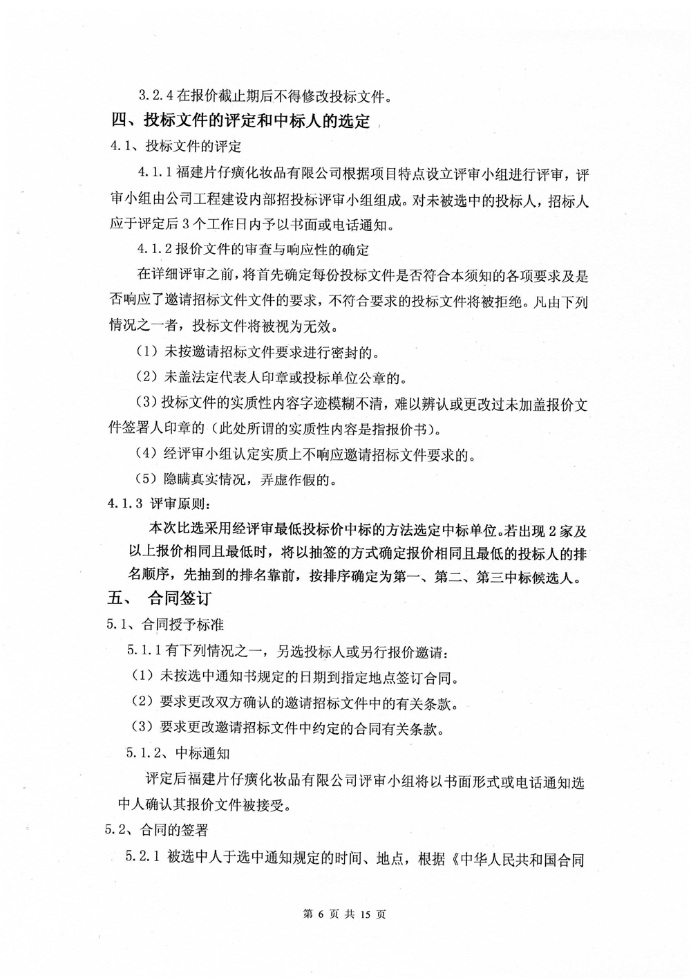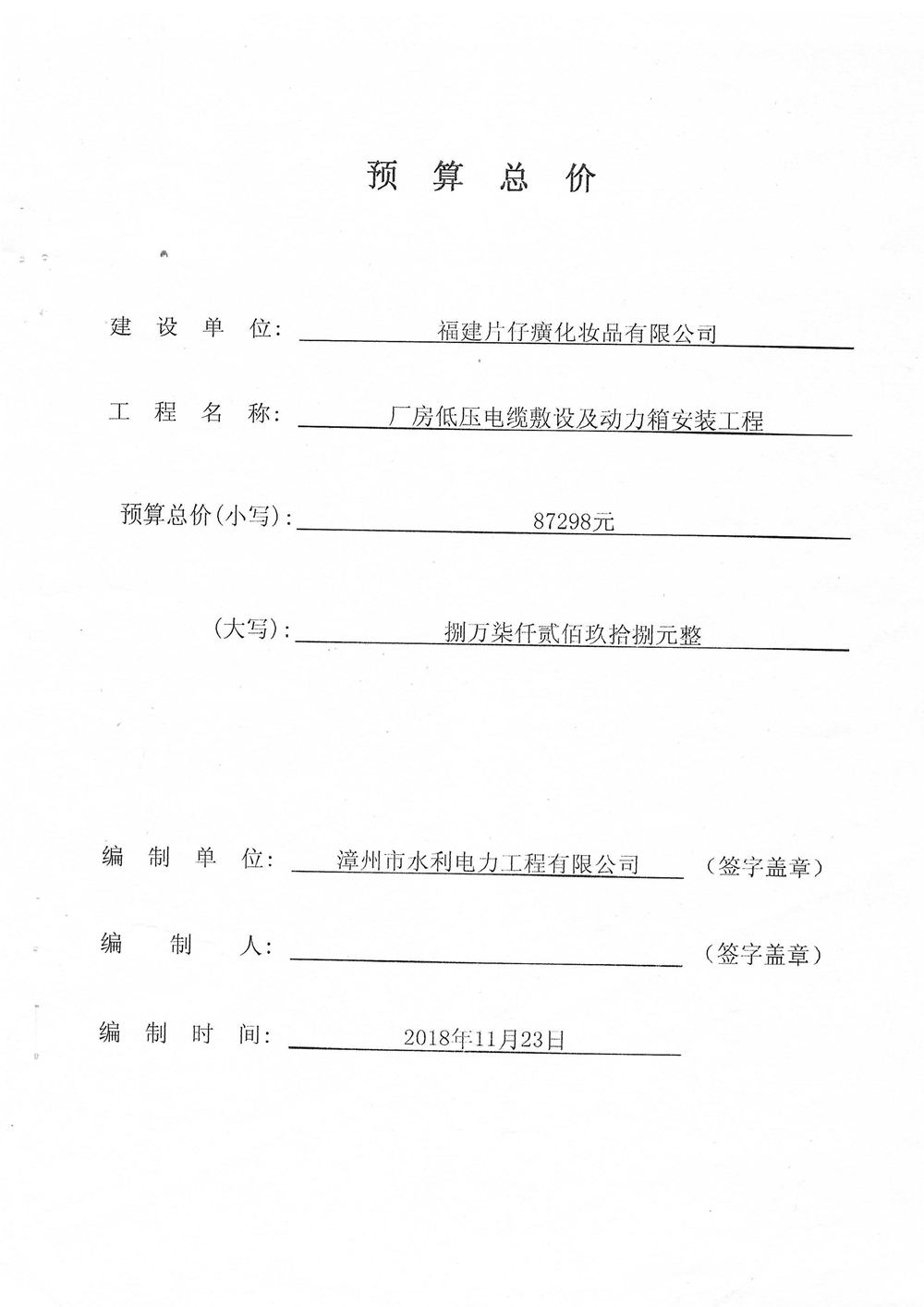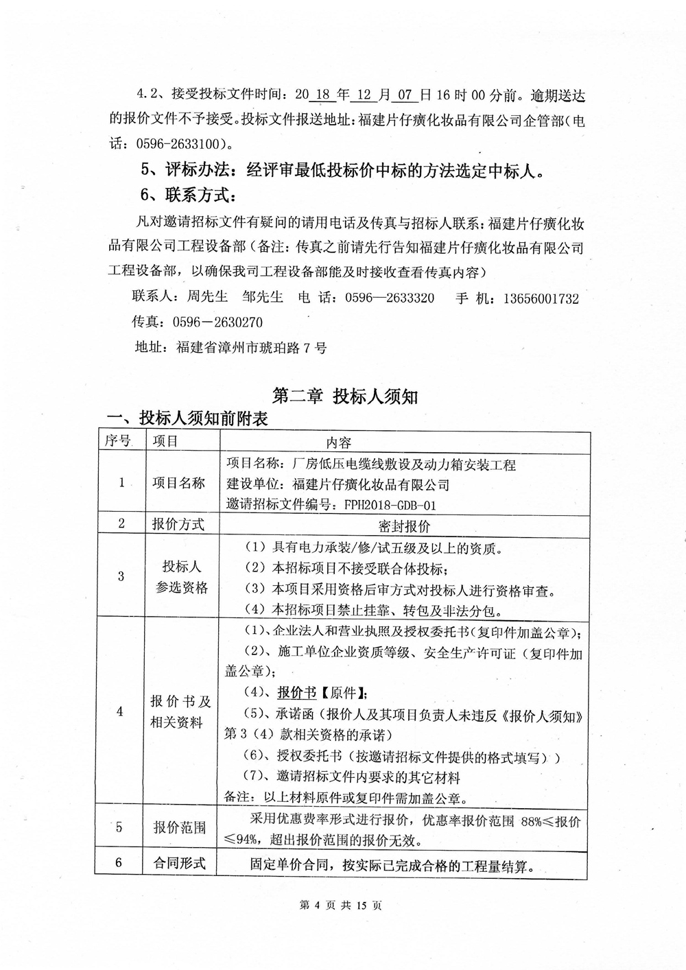 福建片仔癀化妆品有限公司厂房低压电缆线敷设及动力箱安装工程邀请招标文件