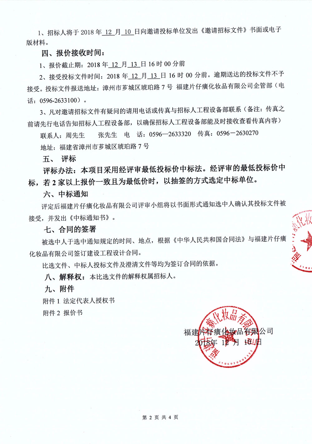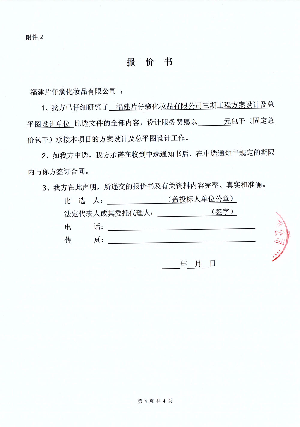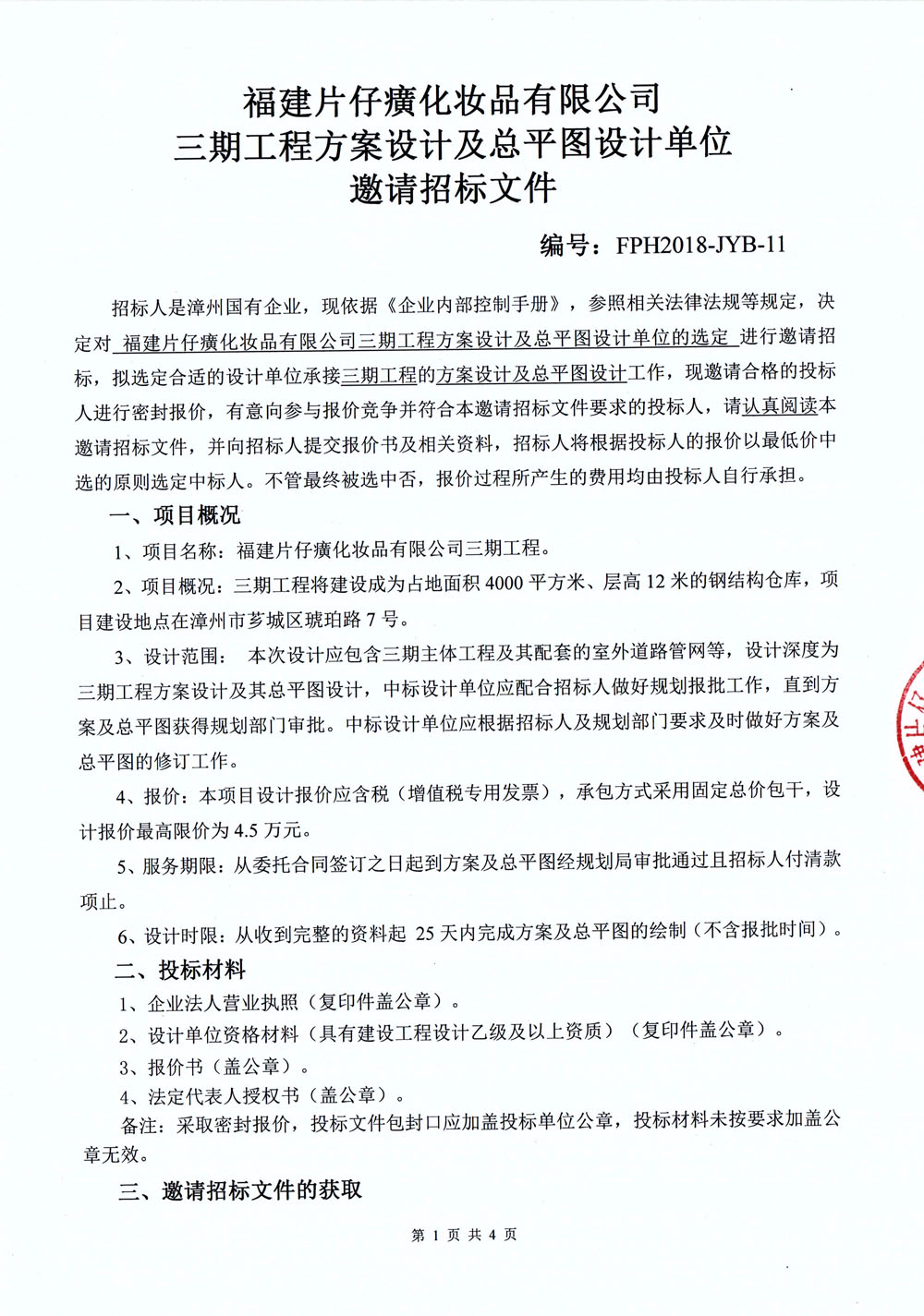 福建片仔癀化妆品有限公司三期工程方案设计及总平图设计单位邀请招标文件