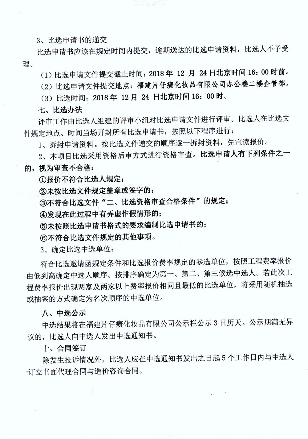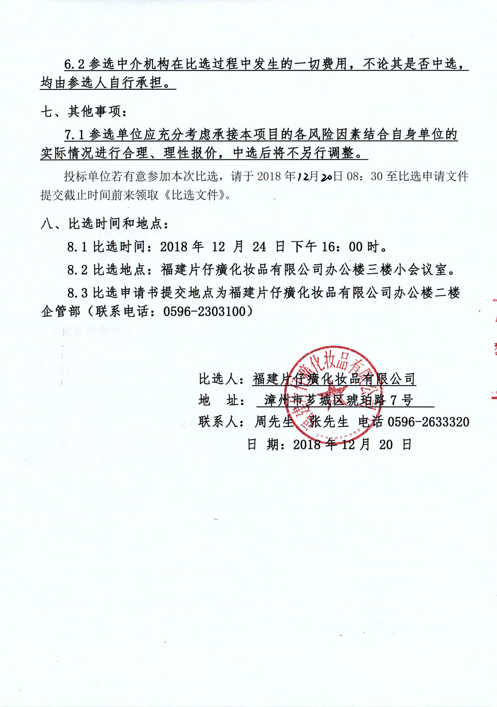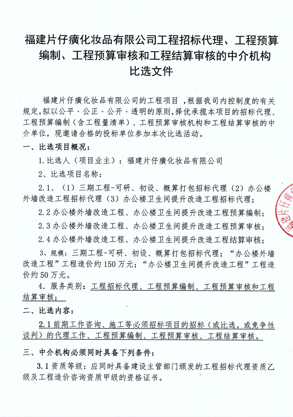 福建片仔癀化妆品有限公司工程招标代理、工程预算编制、工程预算审核和工程结算审核的中介机构比选文件