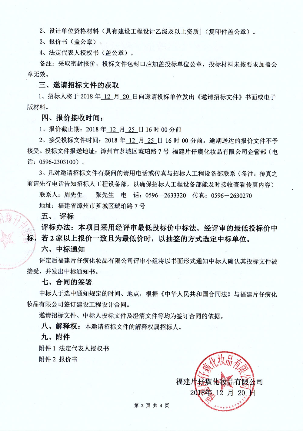 福建片仔癀化妆品有限公司办公楼外墙改造工程设计单位邀请招标文件(第二次招标)