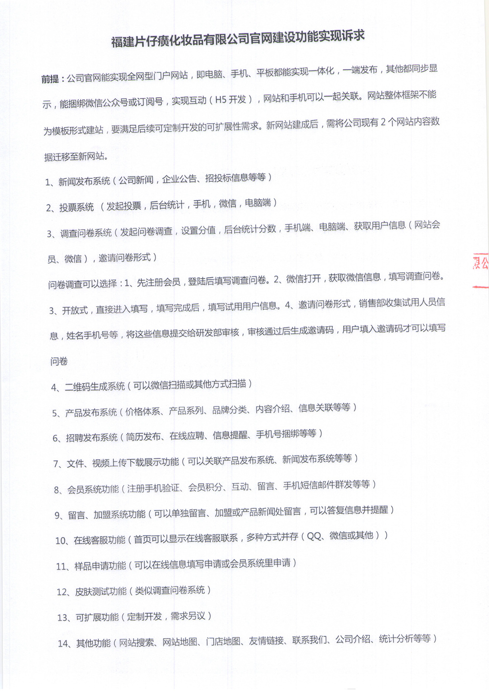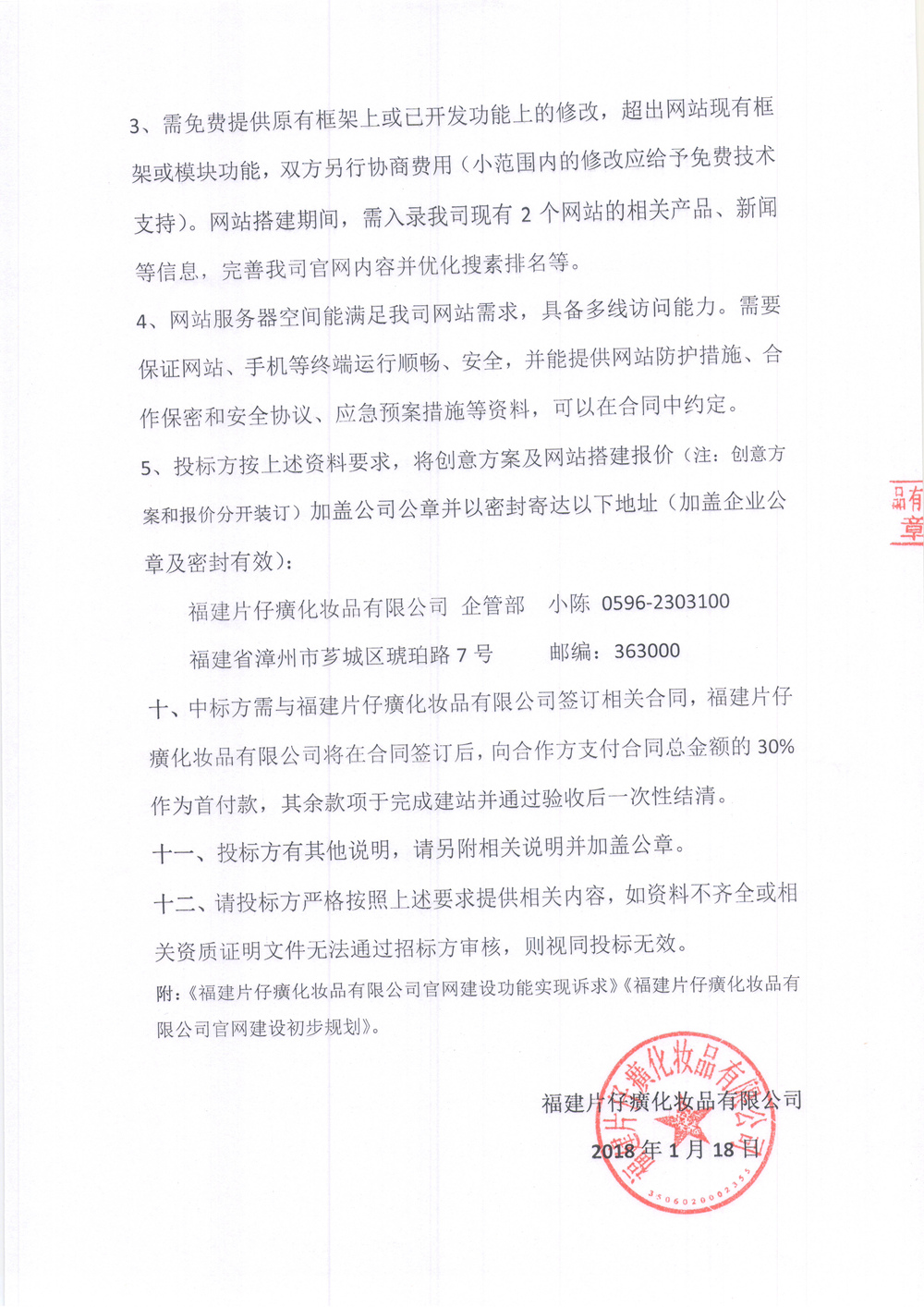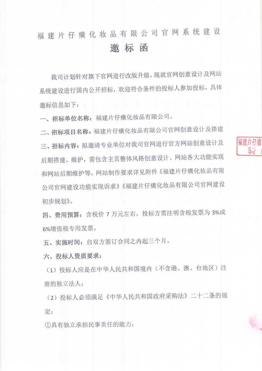 福建片仔癀化妆品有限公司官网系统建设邀标函