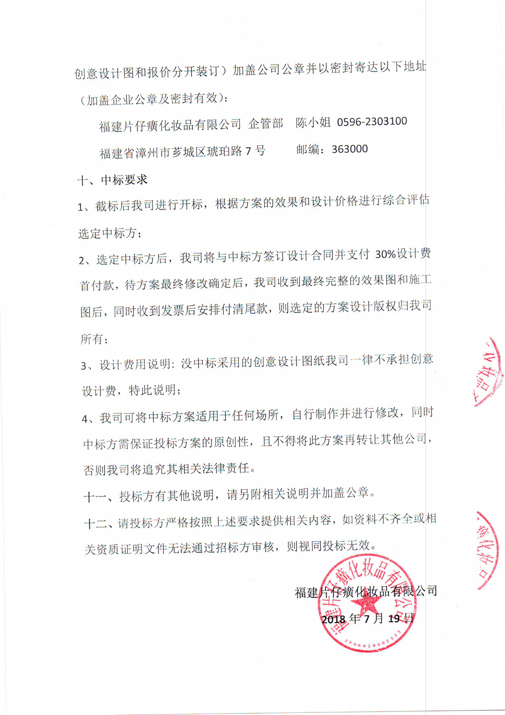 2018片仔癀化妆品体验店形象创意设计邀标函