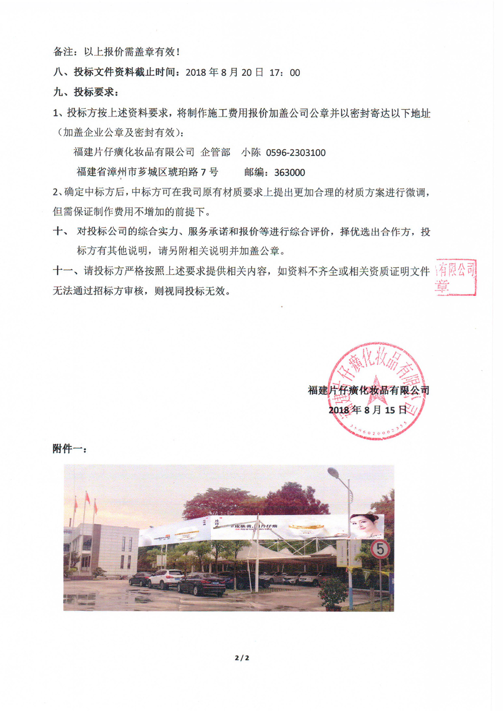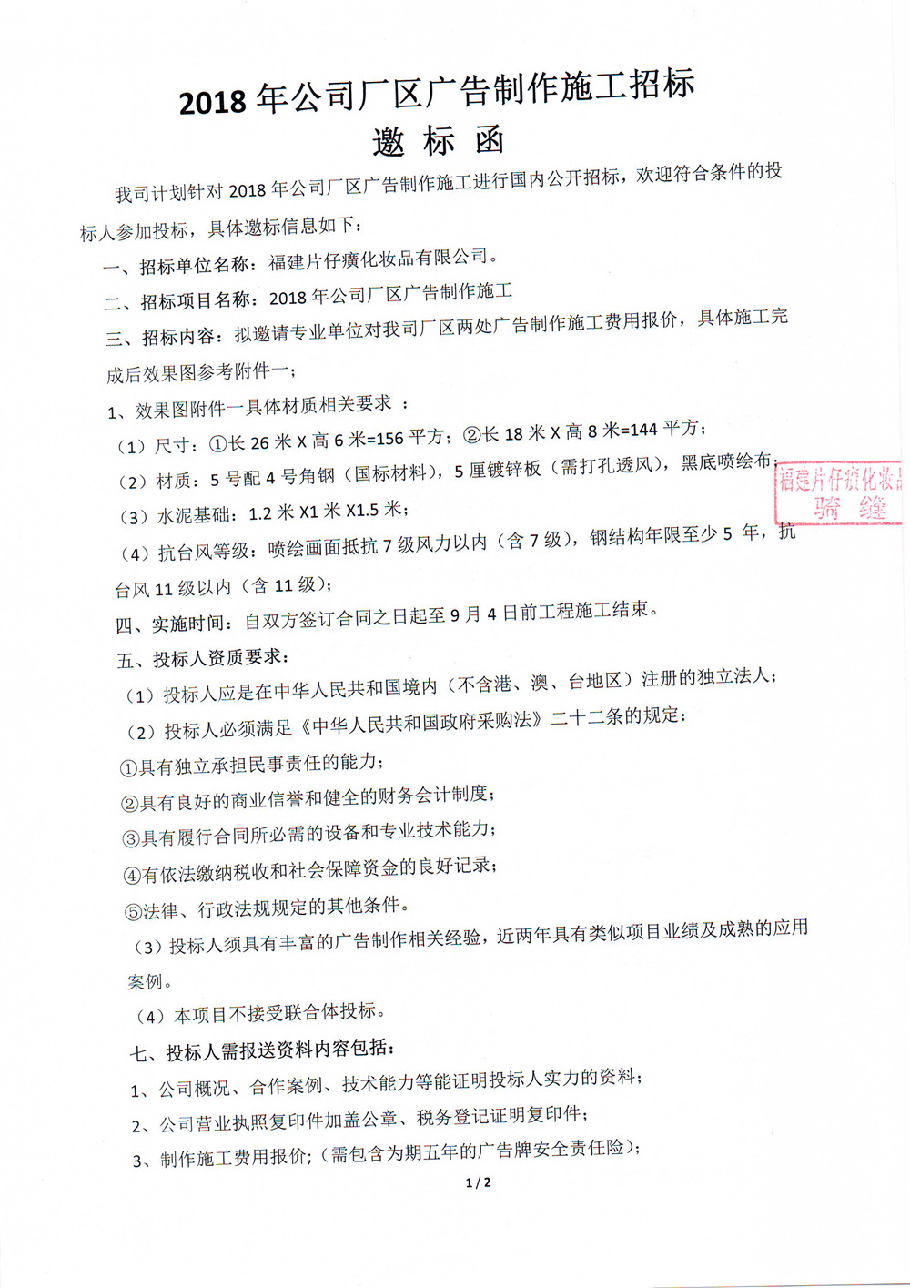 2018年公司厂区广告制作施工招标邀标函