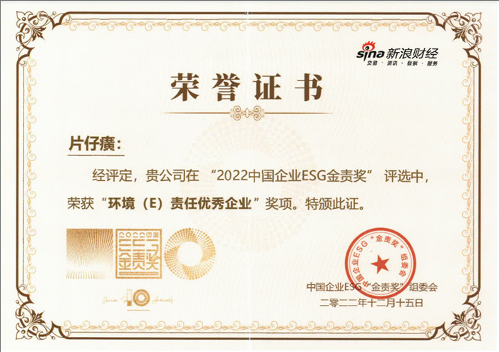 新浪财经2022年金麒麟环境责任优秀企业