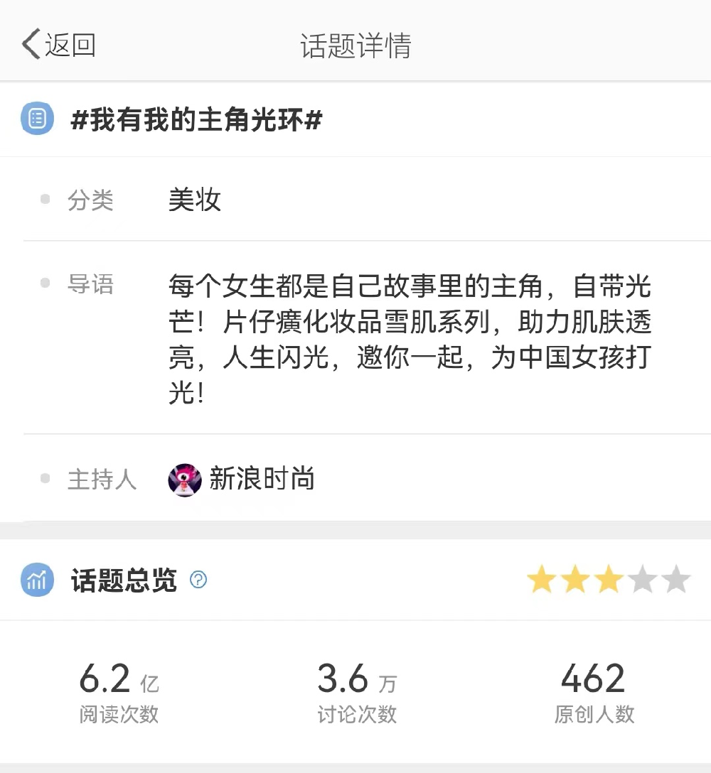 作为传承草本养肤文化的经典国货护肤品牌,片仔癀化妆品也持续关注着新生代消费者在肌肤美白领域日新月异的潮流趋势,为探寻当代中国年轻女性的美白消费密码,联合@新浪时尚,发布了《2022中国女性美白消费趋势报告》,敏锐觉察女性在新时代的美白新需求,锁定全新关键词--“肌肤光泽度”。并围绕片仔癀牌雪肌无瑕润白系列产品,推出了“我有我的主角光环”系列活动。