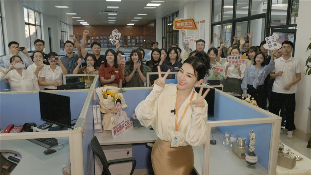 随后,黄奕女士以“一日工作人员”的身份来到公司营销中心,体验片仔癀化妆品的营销工作日常,和“同事们”倾情互动。作为出道以来就佳作不断的实力演员,黄奕女士用精进细腻的演技认真对待每一个角色,塑造了众多深入人心的荧幕形象,这种专注、专业、持之以恒的态度与片仔癀化妆品的理念不谋而合,不少员工在现场表示黄奕女士是自己的偶像。黄奕女士也为片仔癀化妆品营销团队加油鼓气,希望在团队们的共同努力下,把属于我们自己的国货做大做强,让更多消费者用上我们的国妆好产品。
