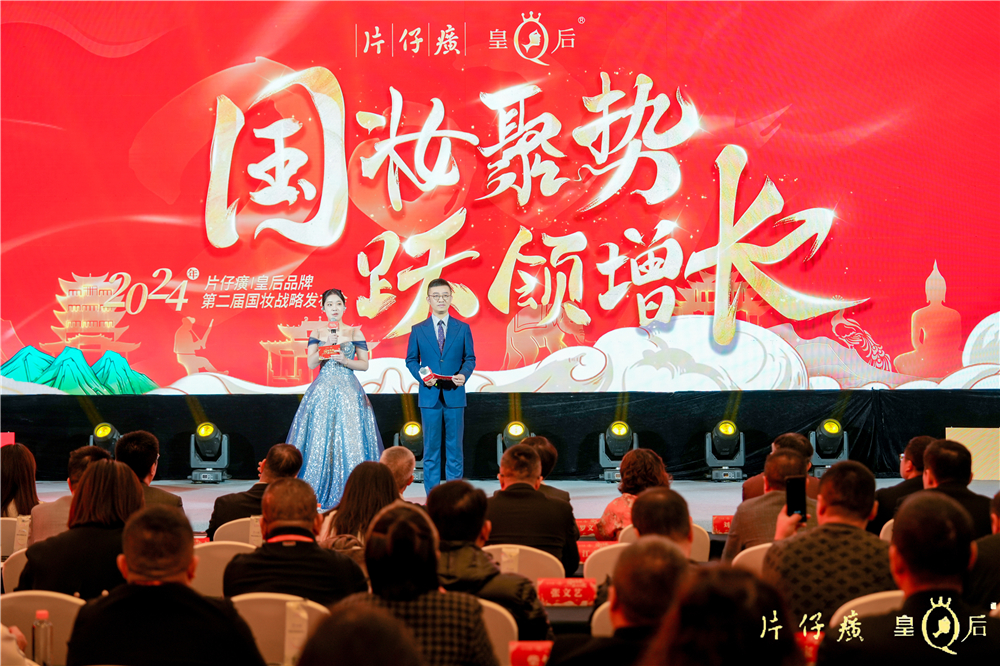 片仔癀化妆品公司副总经理林国强先生发布了片仔癀化妆品接下来的年度营销目标以及营销推广布局:完成一个增长目标——以片仔癀+皇后双品牌驱动,推动线上线下全域增长;落实四大保障——强化品牌营销布局、做大做强美白品类、持续打造超级单品、服务赋能终端与标杆成长,全面开启国妆增长新格局;打造五大增长引擎——形成美白品类增长、全域渠道增长、创新动销增长、百万标杆增长、营销势能增长为核心的五大增长核心,与合作伙伴一起,扛鼎国货美妆,登顶国货新辉煌。