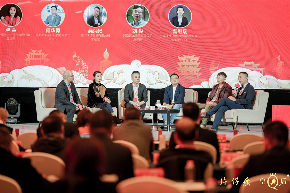 近年来,国潮国货热崛起之下,国妆成为化妆品市场的增长引擎,以其独特的文化力、产品力、科研力、品牌力成为终端运营的新引擎。围绕增长,现场还举行了由东耳文传CEO陈敏先生主持,福建行知堂生物科技有限公司总经理卢兰女士、河南哲龙商贸有限公司总经理刘俊先生、厦门滚动贸易有限公司总经理吴炳扬先生、昆明弘毅远行经贸有限公司创始人何华勇先生、片仔癀化妆品公司营销中心主任曾继瑞先生共同参与讨论的国妆之力圆桌论坛,共同探讨时下市场趋势,共话国妆发展新思路。