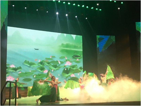 晚会在欢快的开场舞《盛世欢歌》中拉开了序幕。紧接着的潮音锣鼓《龙腾虎跃》,气势磅礴、动人心魄;少儿舞蹈《我爱北京天安门》,充满青春的朝气,抒发了对祖国的热爱之情;歌伴舞《西湖·美从天上来》,展示了漳州田园都市、生态之城的风韵和魅力;情景歌舞《月港故事》,讲述了月港这一明代著名外贸通商口岸的前世今生;龙人古琴《龙津琴韵》、茶艺民乐《奇兰飘香》让观众领略到漳州琴、茶文化的听觉与视觉的盛宴;男声小组唱《闽南人》,唱出了闽南儿女爱国爱乡、敢拼会赢的精神风貌;龙人古琴《龙津琴韵》、新编竹马戏《唐二带妻逛漳浦》、南音表演《百鸟归巢》、器乐舞蹈《高山畲水一家亲》等节目,精彩地呈现了漳州浓郁独特的地方舞台艺术;整场晚会充满了浓厚的漳州味和闽南风,赢得现场观众的阵阵掌声。最后,全场起立齐声《歌唱祖国》,将晚会气氛推向高潮。