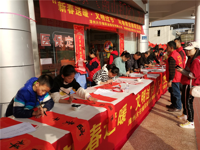 为深入学习贯彻党的十九大精神,不断丰富春节期间基层群众的精神文化生活 ,2019年1月19日上午,漳州片仔癀药业股份有限公司联合西桥街道大桥社区、南山社区,开展了“我们的节日·春节”暨“新春送暖·文明过节”现场写春联送春联志愿服务活动,免费为辖区居民发放春联,让居民切实感受到我国的传统文化和浓浓的节日气息。