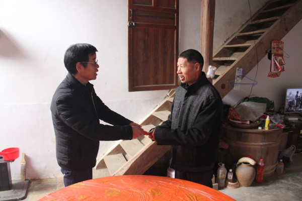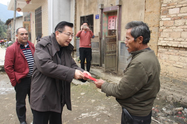 2018年2月7日,片仔癀药业公司调研组,在党委副书记、工会主席洪东明同志和纪委书记林镇国同志带领下,走访驻村任职党员干部张坤印同志所在的漳州平和县芦溪镇九曲村。实地调研走访12户困难户,每户发放1200元慰问金。