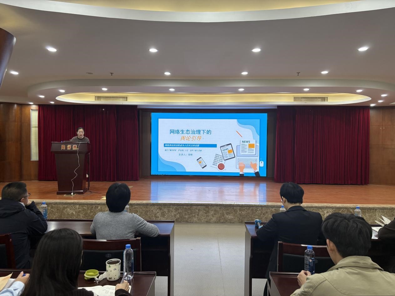 培训会上,徐彬以《网络生态治理下的舆论引导》为题,围绕当前网络生态治理的新形势展开深入解读。授课内容紧扣“什么是舆论”“什么是舆论引导”“舆论引导核心要素”“宣传人员的作用及任务”等核心内容,既从理论层面厘清了意识形态与舆论引导的核心概念,又结合具体实践案例传授了网络舆论引导的实操方法,为参训人员搭建起系统的知识框架。